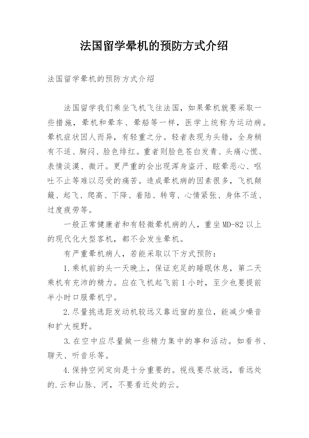 法国留学晕机的预防方式介绍法国留学晕机的预防方式介绍法国留学我们乘坐飞机飞往法国,如果晕机就要采取一些措施,晕机和晕车、晕船等一样,医学上统称为运动病。晕机症状因人而异,有轻重之分。轻者表现为头错,全身稍有不适、胸闷、脸色绯红。重者则脸色苍白发青、头痛心慌、表情淡漠、微汗。更严重的会出现浑身盗汗、眩晕恶心、呕吐不止等难以忍受的痛苦。造成晕机病的因素很多,飞机颠簸、起飞、爬高、下降、着陆、转弯、心情紧张、身体不适、过度疲劳等。一般正常健康者和有轻微晕机病的人,重坐MD-82以上的现代化大型客机,都不会发生晕