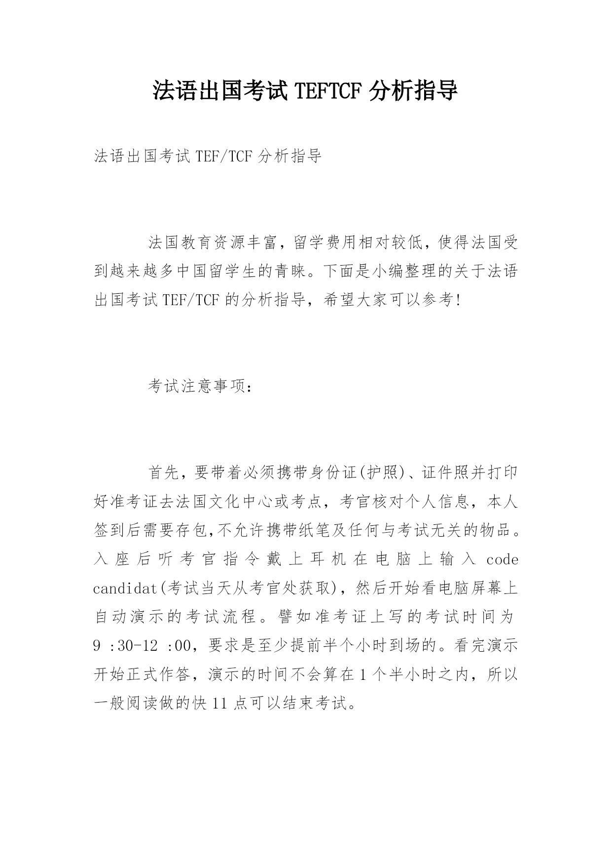 法语出国考试TEFTCF分析指导法语出国考试TEF/TCF分析指导法国教育资源丰富,留学费用相对较低,使得法国受到越来越多中国留学生的青睐。下面是小编整理的关于法语出国考试TEF/TCF的分析指导,希望大家可以参考!考试注意事项:首先,要带着必须携带身份证(护照)、证件照并打印好准考证去法国文化中心或考点,考官核对个人信息,本人签到后需要存包,不允许携带纸笔及任何与考试无关的物品。入座后听考官指令戴上耳机在电脑上输入codecandidat(考试当天从考官处获取),然后开始看电脑屏幕上自动演示的考试流程。