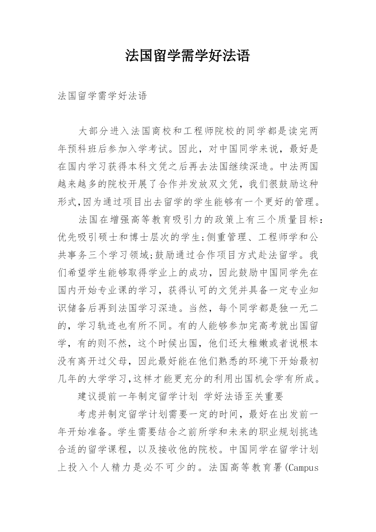 法国留学需学好法语法国留学需学好法语大部分进入法国商校和工程师院校的同学都是读完两年预科班后参加入学考试。因此,对中国同学来说,最好是在国内学习获得本科文凭之后再去法国继续深造。中法两国越来越多的院校开展了合作并发放双文凭,我们很鼓励这种形式,因为通过项目出去留学的学生能够有一个更好的管理。法国在增强高等教育吸引力的政策上有三个质量目标:优先吸引硕士和博士层次的学生;侧重管理、工程师学和公共事务三个学习领域;鼓励通过合作项目方式赴法留学。我们希望学生能够取得学业上的成功,因此鼓励中国同学先在国内开始专业课
