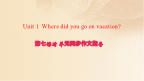 第七课时单元同步作文指导本单元以“谈论节假日活动”为话题展开,要求学生们会运用一般过去时态写一篇自己的旅行日记。日记属于典型的记叙文,首先要注意其格式,其次在写作时要注意时间、地点、人物、经过、结果等。同时要注意主次分明,详略得当,在结尾处最好表达出自己的感受。教材中出现的相关句型:①IwenttoGuizhouwithmyfamily.我和我家人去了贵州。②Wetookquiteafewphotosthere.我们在那里拍了相当多的照片。③Itwasmyfirsttimethere,soeverythi