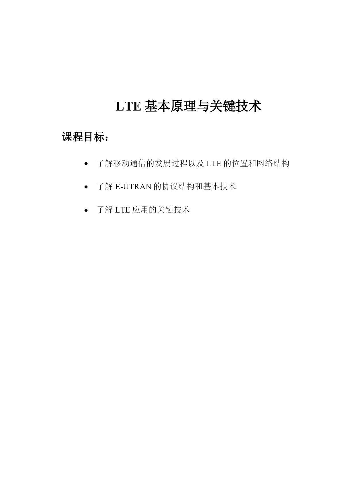 LTE基本原理与关键技术课程目标:了解移动通信的发展过程以及LTE的位置和网络结构了解E-UTRAN的协议结构和基本技术了解LTE应用的关键技术目录TOC\o"1-3"\h\zHYPERLINK\l"_Toc304888260"第1章概述PAGEREF_Toc304888260\h1HYPERLINK\l"_Toc304888261"1.1背景介绍PAGEREF_Toc304888261\h1HYPERLINK\l"_Toc304888262"1.1.1移动通信演进过程概述