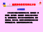 5建筑形体的常用表达方法本章内容三面投影体系是由水平投影面、正立投影面和侧立投影面组成,所作形体的投影图分别是水平投影图、正立投影图和侧立投影图,在工程图中分别叫做平面图、正立面图和侧面图。大多数形体,如一幢建筑,由于其正面和背面不同,左侧面和右侧面也不相同,用三视图表示,很显然表达不清。因此,在原有三投影面(H、V、W)的正对面又增加了三个投影面:在水平投影面对面增加的投影面用H1表示,其上投影图为底面图;在正立投影面对面增加的投影面用V1表示,其上投影图为背立面图;在左侧立面对面增加的投影面用W1表