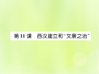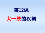 第12课大一统的汉朝汉初经济情况汉初经济情况请回忆上堂课的内容:是什么原因造成了汉初经济萧条的局面?汉初统治政策汉文帝汉景帝汉初的统治政策(休养生息):文景之治时的盛世景象:一、“文景之治”二.汉武帝的大一统大一统就是中央加强对政治、经济、思想、文化等各方面的统一领导,形成高度中央集权的政治局面.削弱诸侯国势力韩非子董仲舒请同学们看书68页—69页内容,根据第9课儒家、道家、法家的思想将他们对汉武帝的建议,即按照自己学派来治理国家的场景表现出来。第一步:汉武帝对诸子百家的批评愁眉不展,不知如何是好……第二