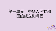 第一单元中华人民共和国的成立和巩固一、选择题1.中华人民共和国建立,中国历史从此揭开了新的篇章。对“新篇章”的理解不正确的是()A.标志着中国从此走上社会主义道路B.标志着中国新民主主义革命的胜利C.标志着中国半殖民地半封建时代结束D.标志着中国人民成为国家的主人2.某旅行社设计了“上海—南昌—延安—北京”这样一条红色旅游线路,你认为这条线路设计的主题是为了展示()A.土地革命战争B.解放战争C.抗日战争D.中国共产党的革命历程3.阿沛·阿旺普美,因病于2009年12月23日在北京逝世,享年100岁。他为