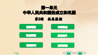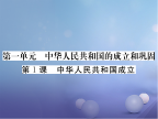 第一单元中华人民共和国的成立和巩固中华人民共和国的成立和巩固第1课中华人民共和国成立第1课中华人民共和国成立第1课中华人民共和国成立(1)根据史料并结合所学知识,分析“我们已经站起来了”这句话的主要表现。谈谈中华人民共和国成立的历史意义。(2)“少年强则国强”“知耻而后勇”,祖国的未来需要广大青少年去努力创造。请你结合中国近代百年巨变,谈谈我们青少年学生应承担什么责任。正确理解“中华人民共和国的成立开辟了中国历史的新纪元”探究点二中国人民政治协商会议材料二在全国各地方未能实行普选以前,中国人民政治协商会议