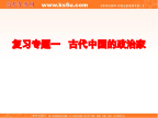 复习专题一古代中国的政治家【整体感知】千秋功过秦始皇【学习要求】【知识结构】【基础知识回顾】2、过程:二、确立中央集权3、影响三、大一统政策的实施【重难点突破】【史论共享】2、过失【典型例题】(2)“惩戒亡秦孤立之败”是什么意思?从现在看来这种说法有什么问题?课堂检测1、据一本书中提到,公元前213年,咸阳有一位商人坐马车来到象郡,用他携带的200枚秦半两钱买了三个象牙、10本《庄子》以及109斤水稻,根据所学知识判断,这一记载()A、属实B、不可能是事实C、不能判断D、有可能是事实2、柳宗元在《封建论》