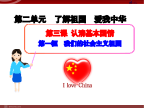 第三课认清基本国情第一框我们的社会主义祖国1.了解中国的国际地位日益提高,在国际舞台上发挥着越来越重要的作用。2.认清我国的基本国情,知道我国正处在社会主义初级阶段。3.明确我国社会的主要矛盾、国家的根本任务。4.知道我国必须长期坚持的指导思想是坚持马克思列宁主义、毛泽东思想、邓小平理论和“三个代表”重要思想。互动探究新年前夕,国家主席胡锦涛通过中国国际广播电台、中央人民广播电台、中央电视台,发表题为《共同增进各国人民福祉》的新年贺词:中国加强同各国的友好合作,积极参与应对国际金融危机、气候变化、核安全等