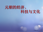 元朝的经济、科技与文化社会经济的发展思考讨论元朝的农业政策《农桑辑要》由元朝管理农桑水利的机构大司农司主持编写,是我国现存最早的官修农书。《农书》的作者王祯,全书分为农业通论、植物栽培、农器图谱三部分。纺织业与制瓷业国际性大都市——大都黄道婆郭守敬(1231—1316),元代著名的科学家。他编制的《授时历》以365.2425天为一年,同现行公历的一周年相同,但比现行公历早300年;他主持开凿通惠河。河南登封郭守敬观星台思考讨论元曲元曲四大家与代表作关汉卿(1219-1301年),元代戏剧作家,元代杂剧奠基