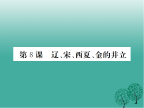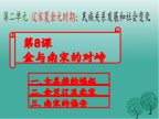 第8课金与南宋的对峙“醉里挑灯看剑,梦回吹角连营。八百里分麾[huī]下炙[zhì],五十弦翻塞外声。沙场秋点兵。”(译文:醉梦里挑亮油灯观看宝剑,梦醒时听见军营的号角声响成一片.把牛肉分给部下享用美餐,让乐器奏起雄壮的军乐鼓舞士气.这是秋天在战场上阅兵.)这是南宋抗金将领辛弃疾的《破阵子·为陈同甫赋壮词以寄之》中的词句,描写的是南宋抗金军队的情景。金是由哪个民族建立的?又是如何灭掉了北宋?南宋与金之间的关系是怎样的?女真族是我国古老的民族之一,居住在黑龙江流域和长白山一带,过着游牧渔猎的生活。辽宋时期,