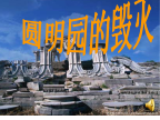 圆明园的毁灭我国的宝贵文化遗产中还有一座位于北京西北郊举世闻名的皇家园林,但是它已经不存在了。在1860年,英法联军侵入北京,将它毁灭了。它的毁灭是中华民族遭受屈辱的历史见证。1.圆明园为什么会毁灭?2.是什么人将它毁灭的呢?本课生字PPT模板:www.1ppt.com/moban/PPT素材:www.1ppt.com/sucai/PPT背景:www.1ppt.com/beijing/PPT图表:www.1ppt.com/tubiao/PPT下载:www.1ppt.com/xiazai/PPT教程:www