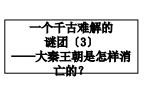 一个千古难解的谜团〔3〕——大秦王朝是怎样消亡的?一位前所未有的强悍君主前222年公元前770年,秦襄公建立秦国;公元前221年,秦始皇统一六国,建立秦朝,称始皇帝;秦从建国到统一,用了550年,从襄公到秦始皇,共有29位国王。秦朝是中国第一个统一的中央集权的封建制王朝。秦始皇认为过去的“君〞或“王〞这些称号都不够以显示自己的尊崇,于是依据“三皇五帝〞的说法创造出“皇帝〞这个新头衔授予自己。从此以后,“皇帝〞就成为中国封建社会最高统治者的称谓。一个影响深远的统一王朝1.确立了中央集权的体制;2.统一文字,