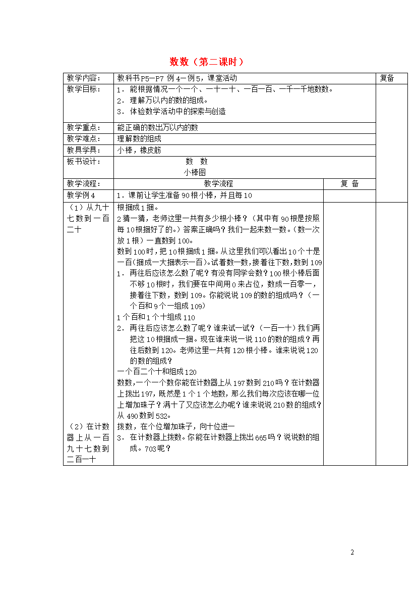 教案-全国-2019_二年级数学下册 一 万以内数的认识 数数(第二课时)教案 西师大版