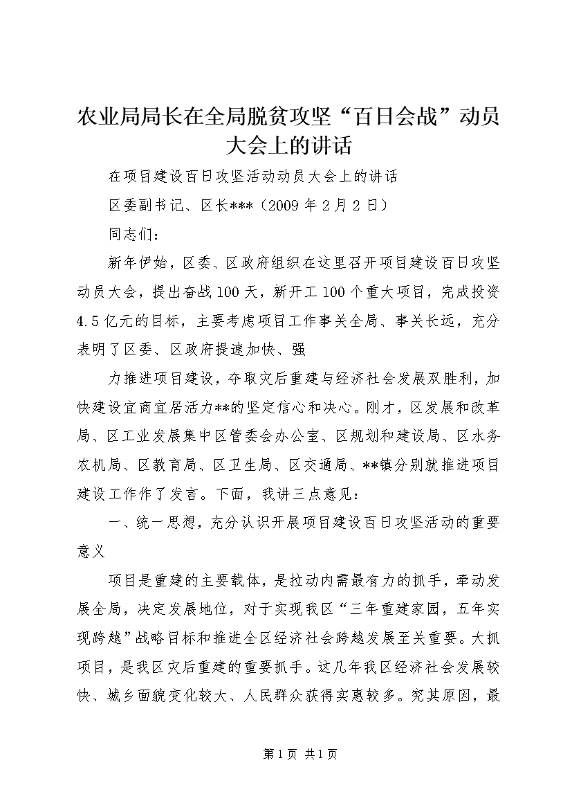 农业局局长在全局脱贫攻坚“百日会战”动员大会上的讲话 (5)