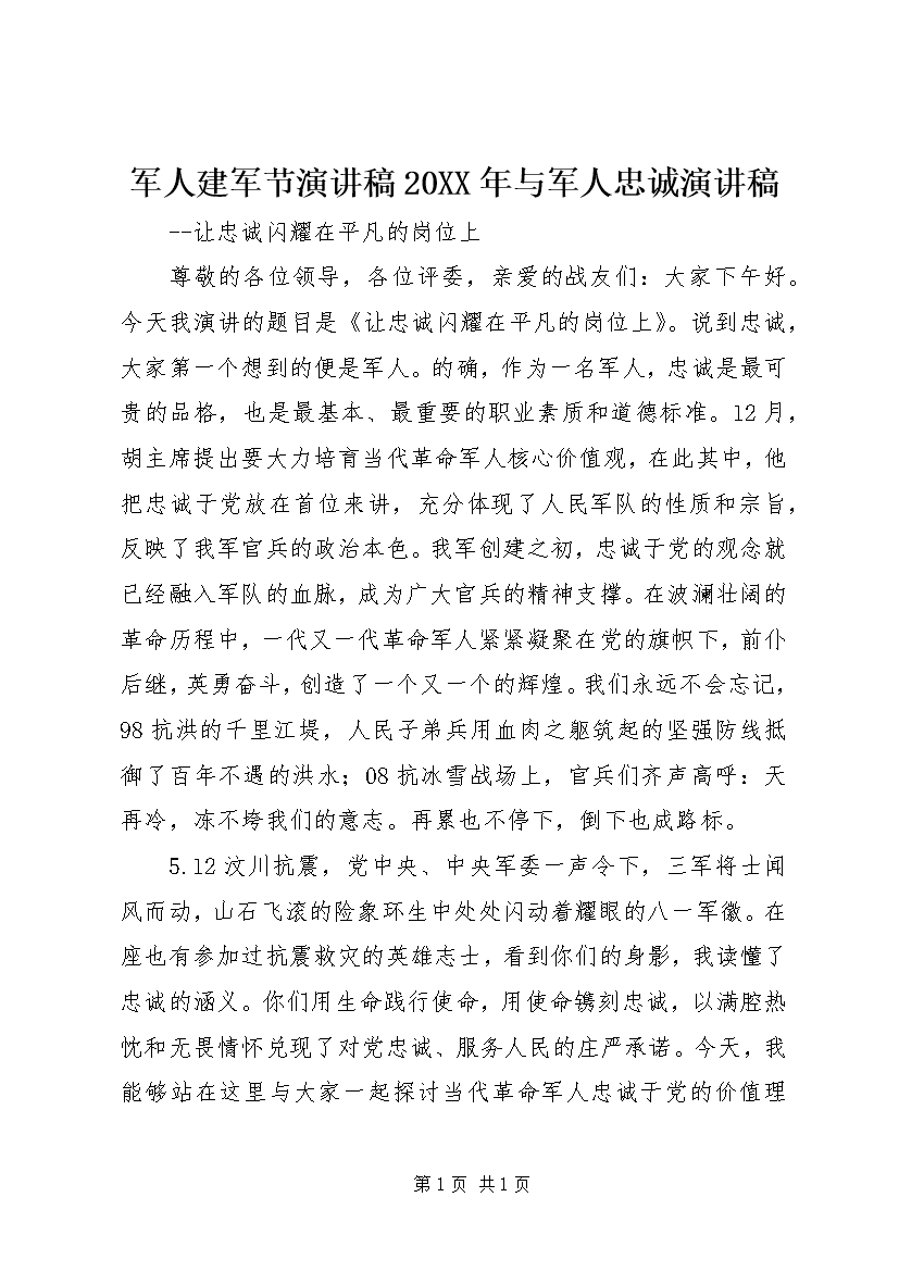 军人建军节演讲稿20XX年与军人忠诚演讲稿 (3)