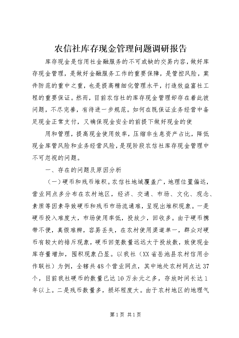 农信社库存现金管理问题调研报告 (3)