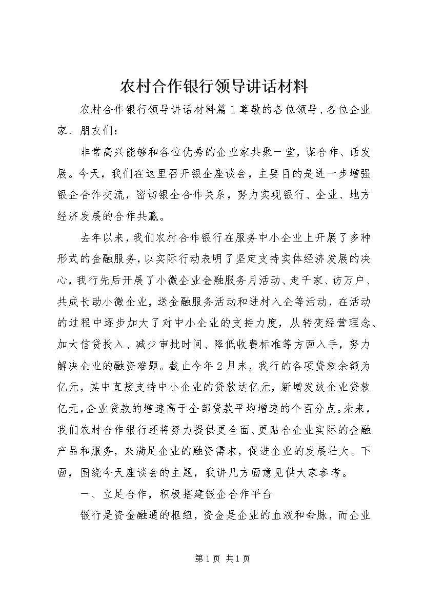农村合作银行领导讲话材料