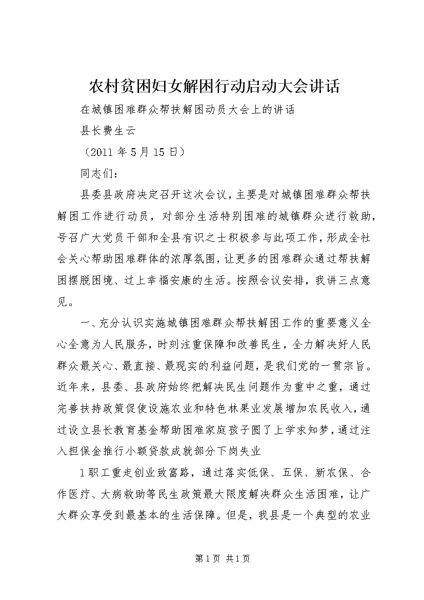 农村贫困妇女解困行动启动大会讲话 (5)