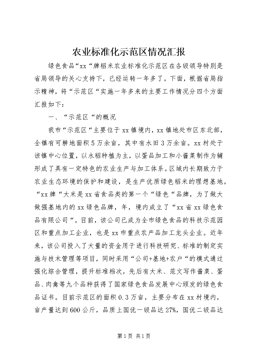农业标准化示范区情况汇报 (2)