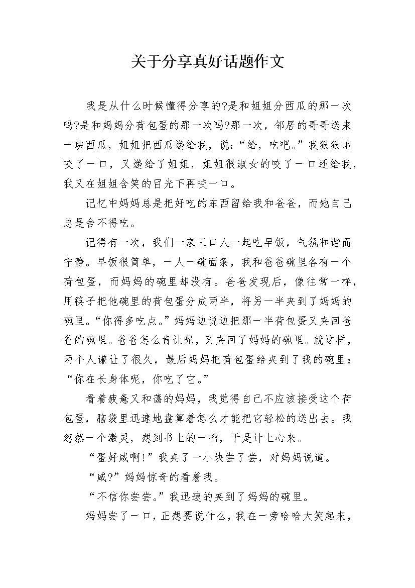 关于分享真好话题作文