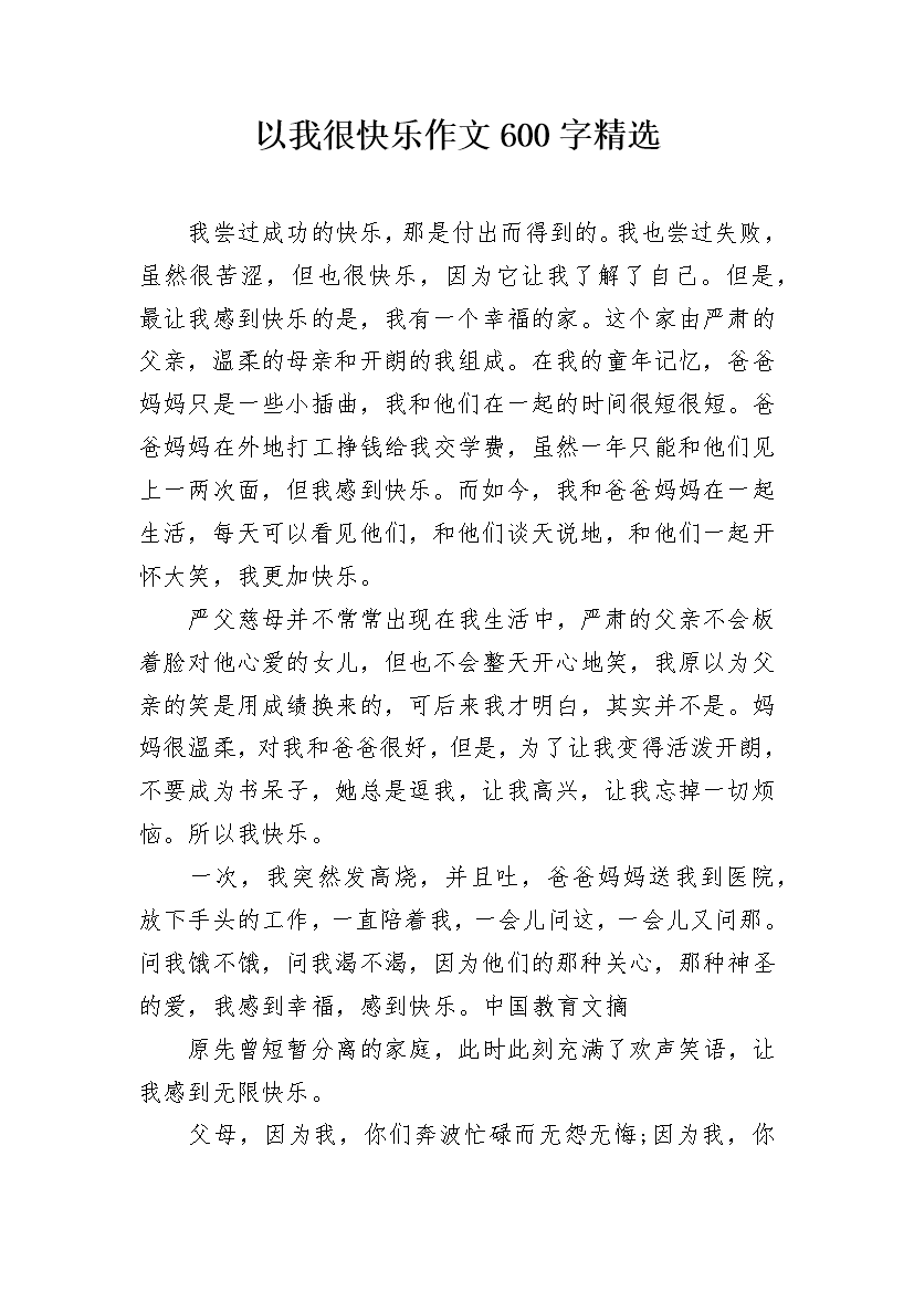 以我很快乐作文600字精选