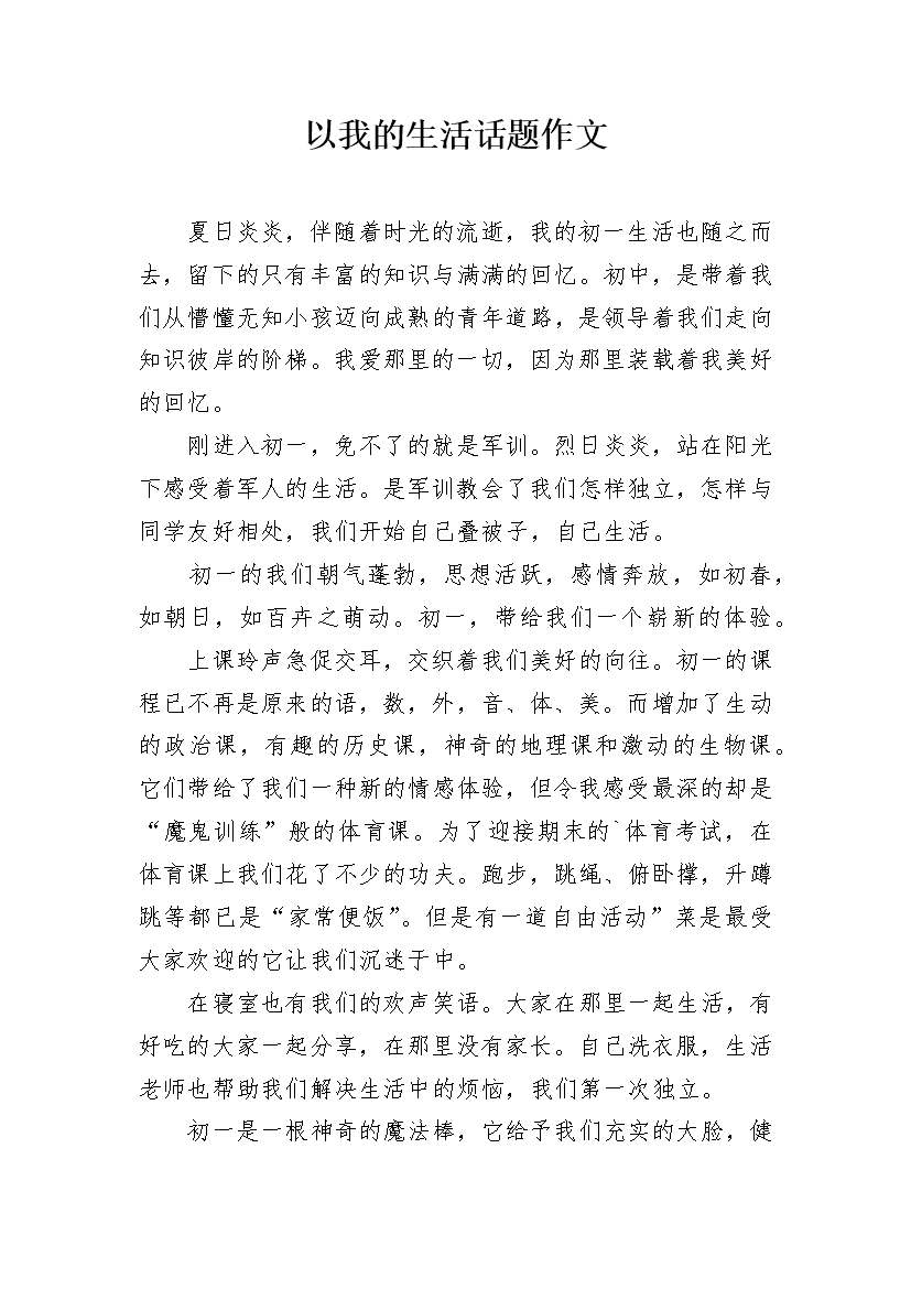 以我的生活话题作文