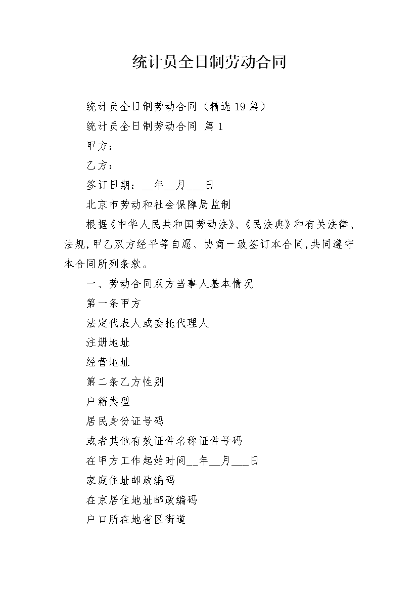 统计员全日制劳动合同