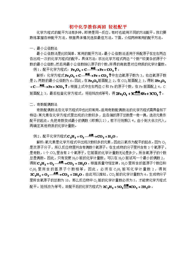 试题-全国-2010_初中化学教你两招 轻松配平学法指导
