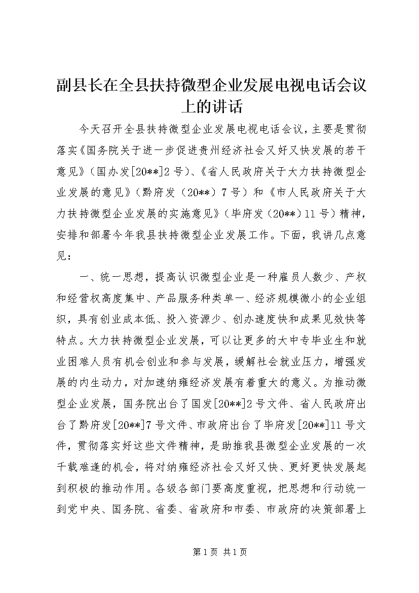 副县长在全县扶持微型企业发展电视电话会议上的讲话_1