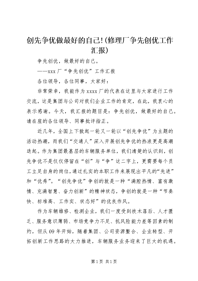 创先争优做最好的自己!(修理厂争先创优工作汇报)