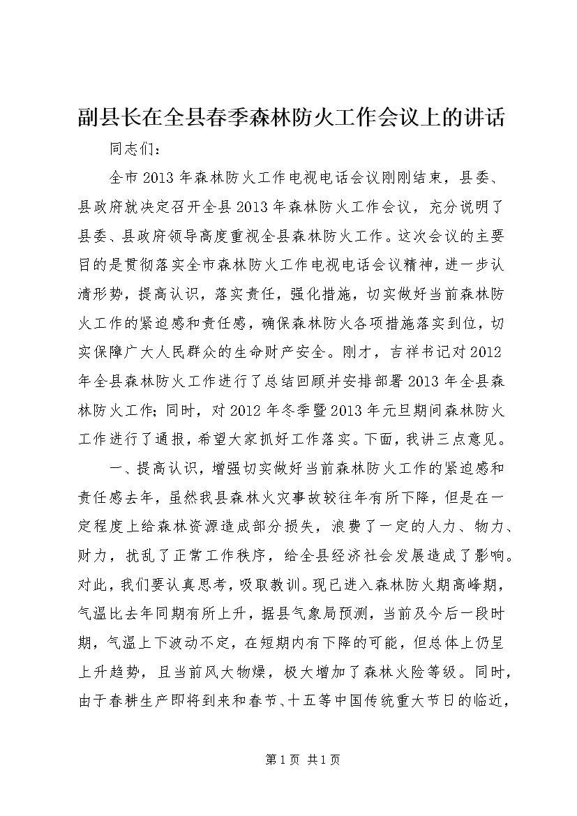 副县长在全县春季森林防火工作会议上的讲话 (8)