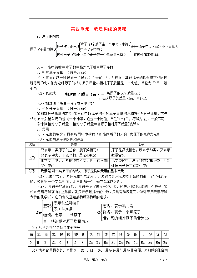 试题-山东-2012_山东省肥城实验中学2012年中考化学冲刺复习 第4单元构成物质的奥秘