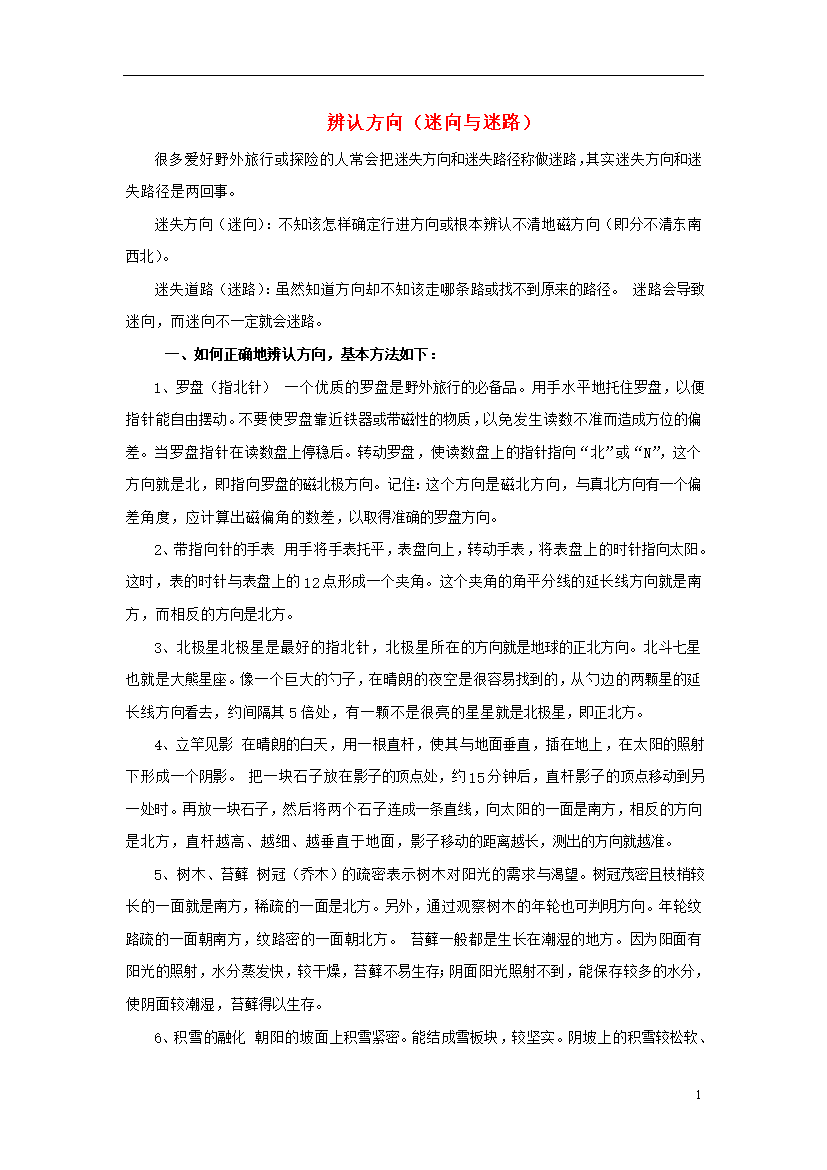 素材-全国-2015_2015春二年级数学下册《辨认方向(迷向与迷路)》教学拓展内容 北师大版