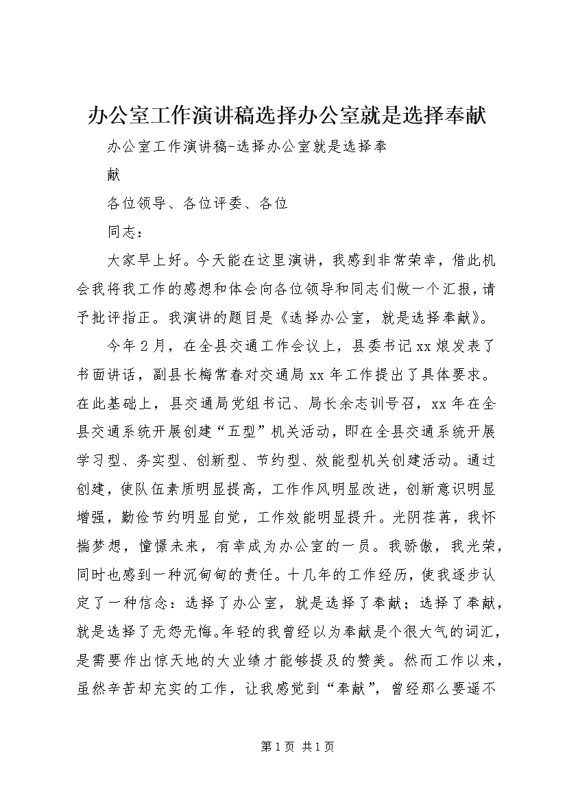 办公室工作演讲稿选择办公室就是选择奉献 (2)