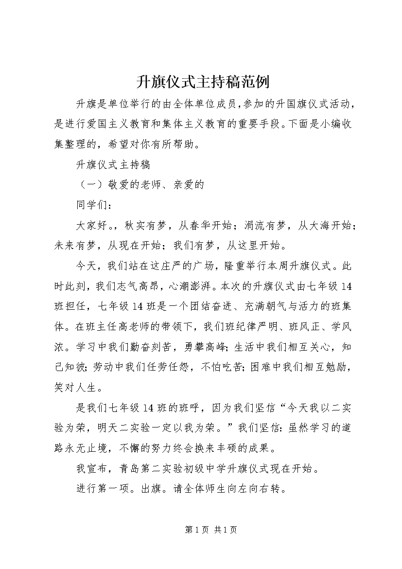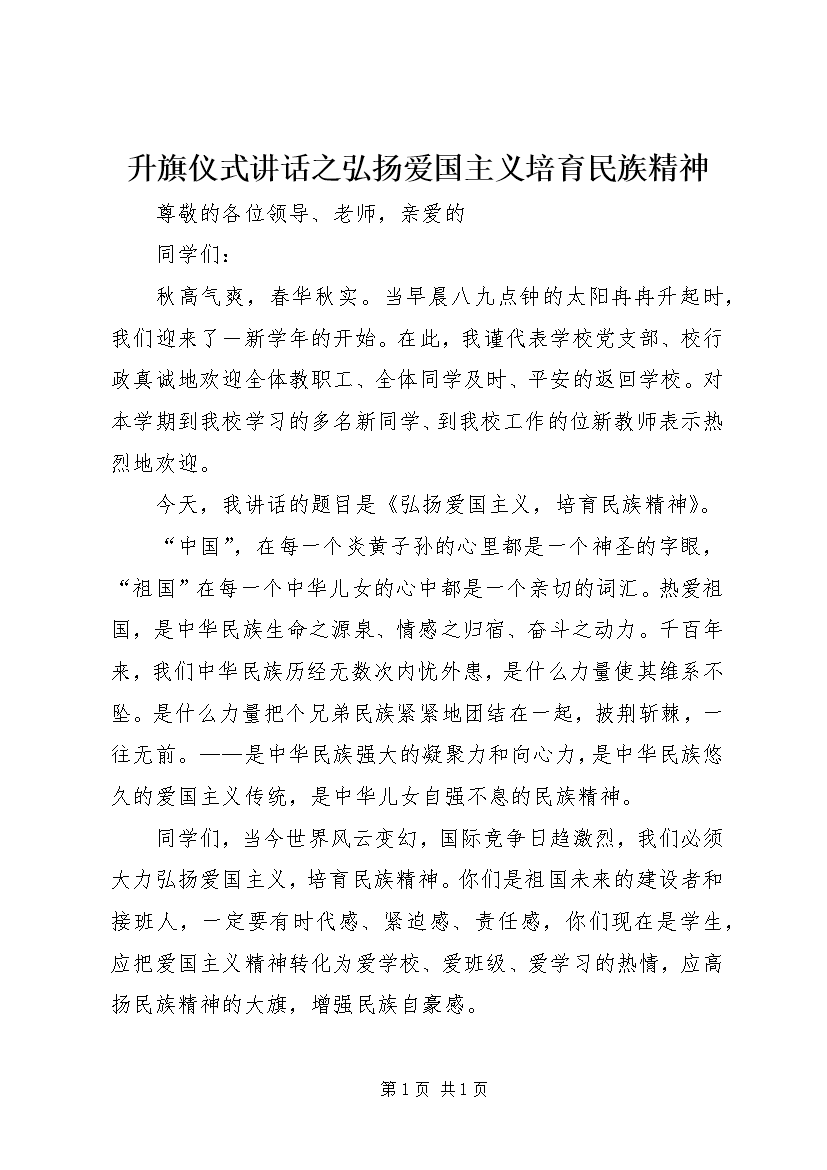 升旗仪式讲话之弘扬爱国主义培育民族精神