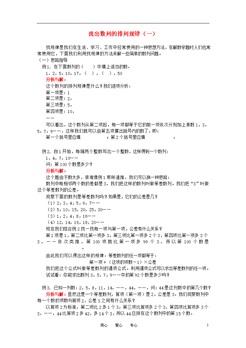 试题-全国-2011_小学奥林匹克数学 找出数列的排列规律(一)