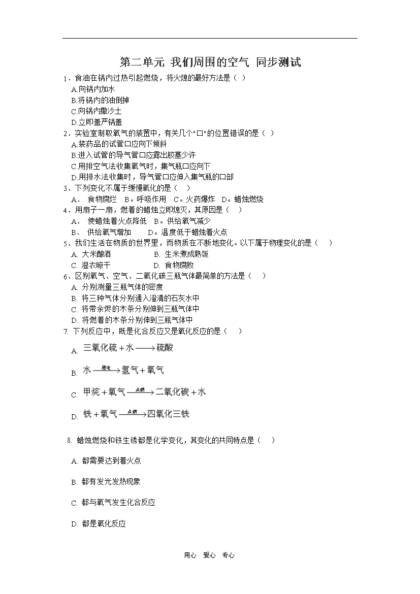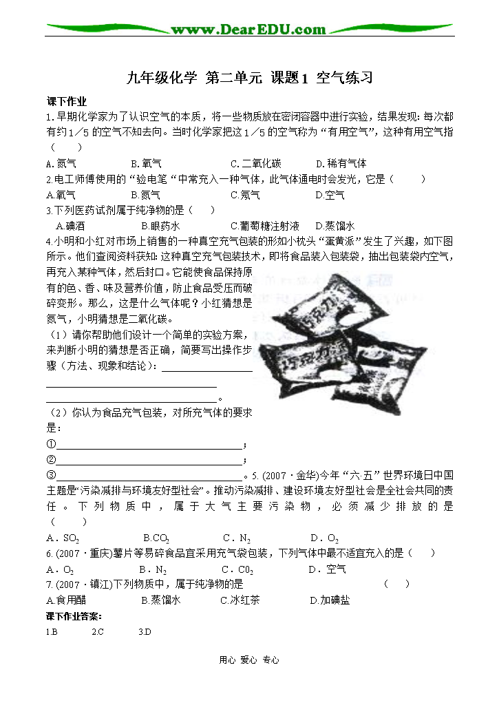 试题-全国-2008_九年级化学 第二单元 课题1 空气练习