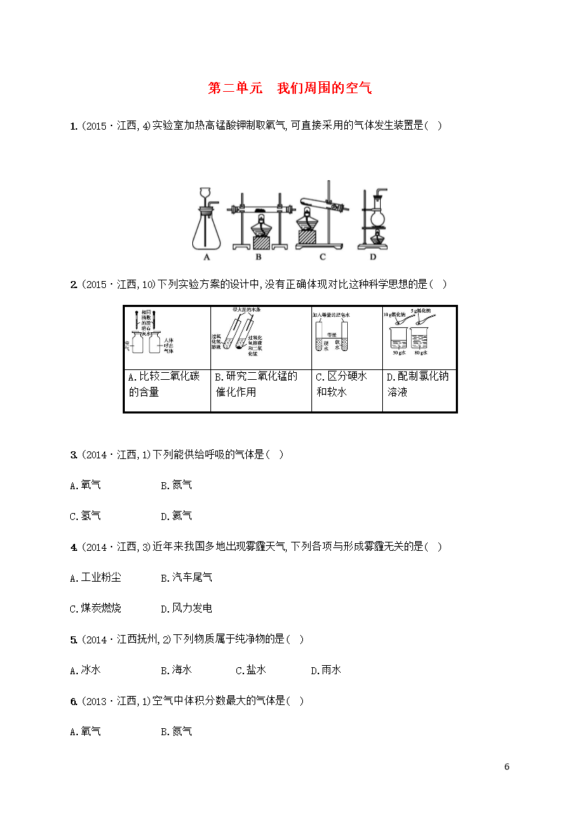 试题-全国-2016_(江西专用)2016中考化学总复习 第二单元 我们周围的空气试题