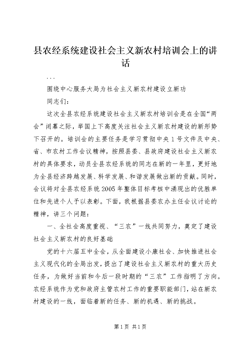 县农经系统建设社会主义新农村培训会上的讲话 (4)