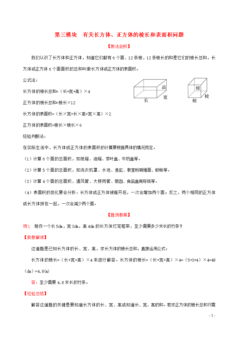 试题-全国-2019_2019版五年级数学下册 第三模块 有关长方体、正方体的棱长和表面积问题试题 新人教版