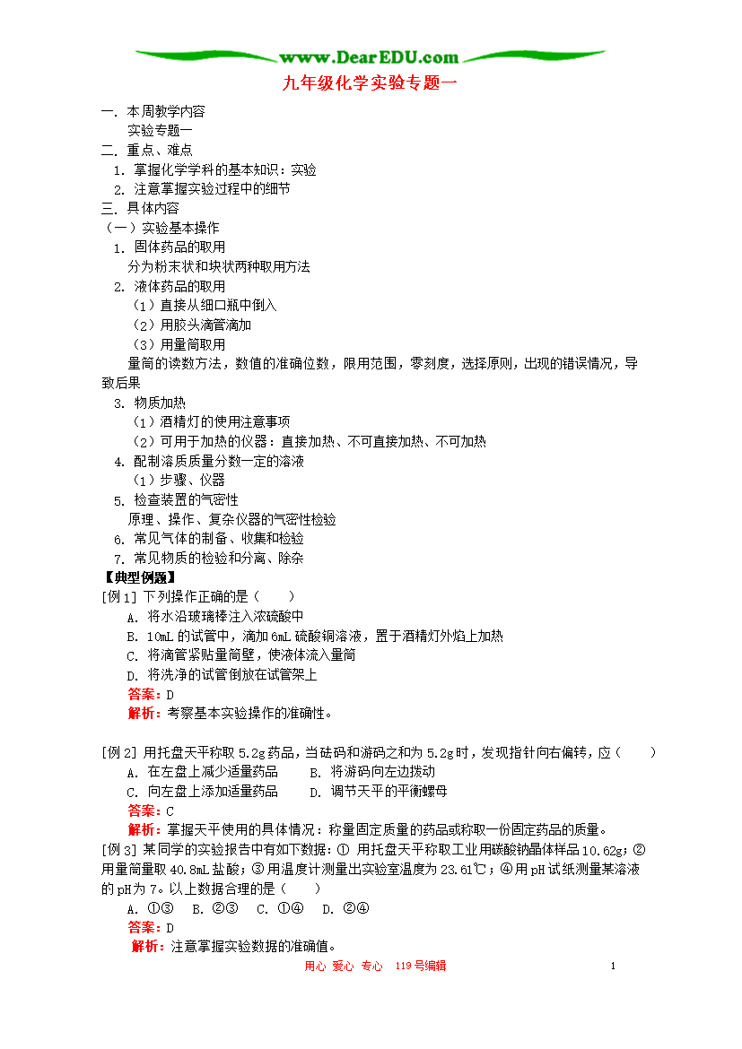 试题-全国-2006_九年级化学实验专题一 人教四年制版