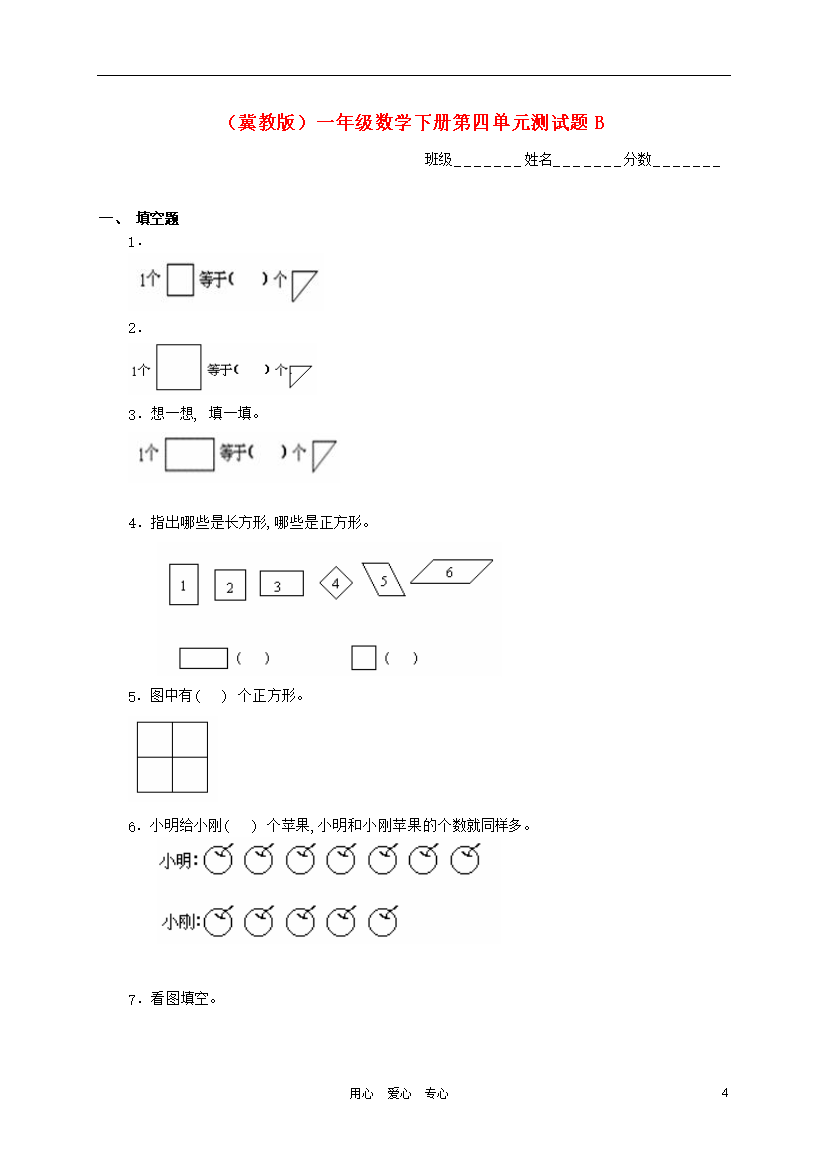 试题-全国-2011_一年级数学下册 第四单元测试题B(无答案) 冀教版