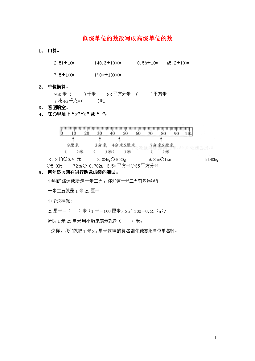 试题-全国-2020_四年级数学下册 4 小数的意义和性质 4