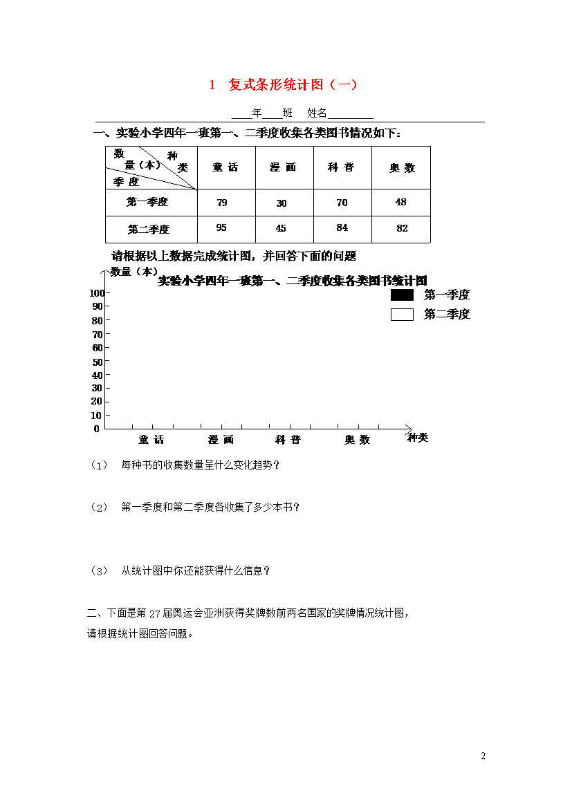试题-全国-2019_四年级数学上册 第六单元 统计 1复式条形统计图(一)一课一练(无答案) 新人教版