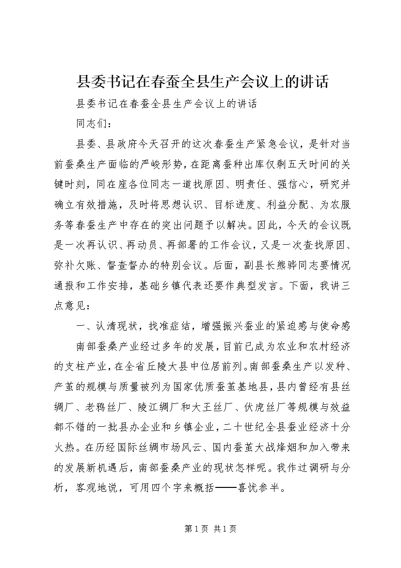 县委书记在春蚕全县生产会议上的讲话 (2)