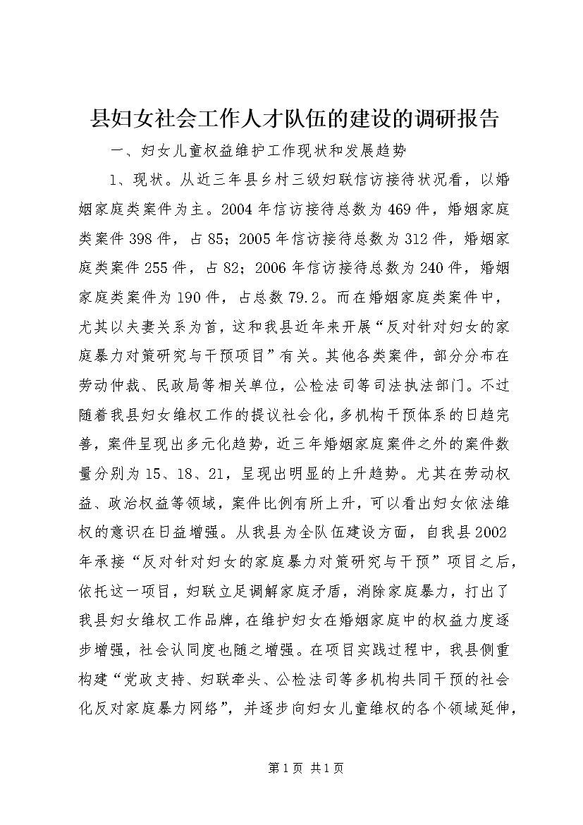 县妇女社会工作人才队伍的建设的调研报告 (4)