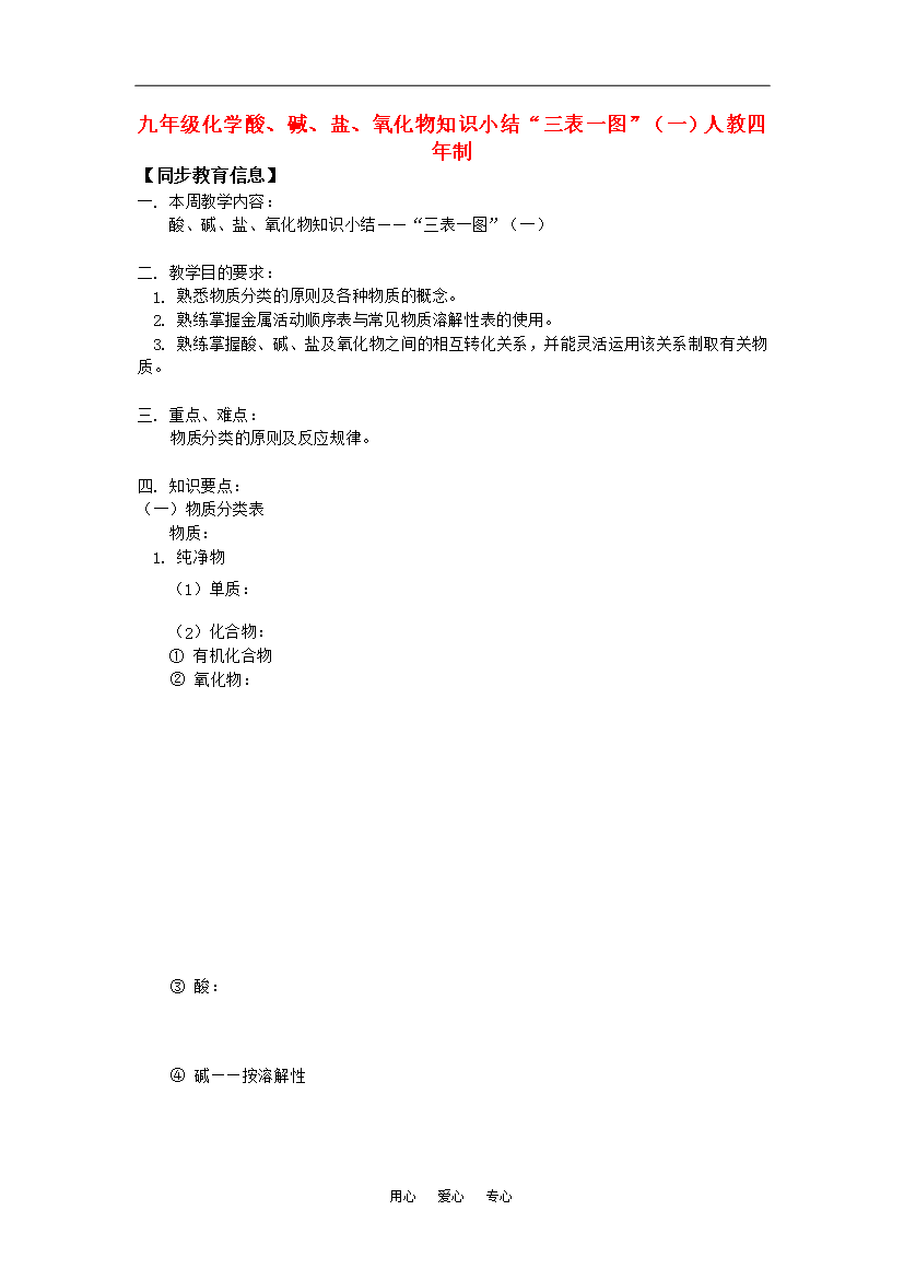试题-全国-2009_九年级化学酸、碱、盐、氧化物知识小结“三表一图”(一)人教四年制
