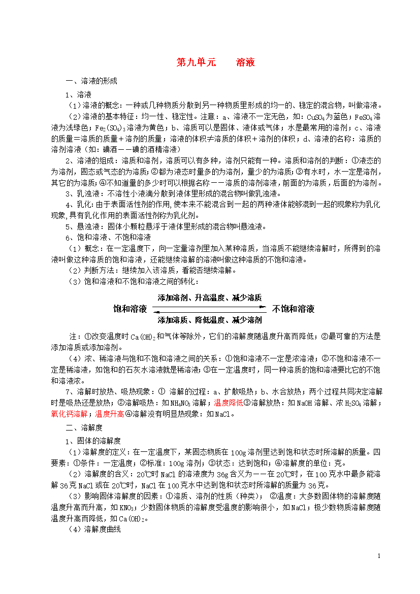试题-全国-2012_中考化学一轮复习 第9单元溶液 人教新课标版