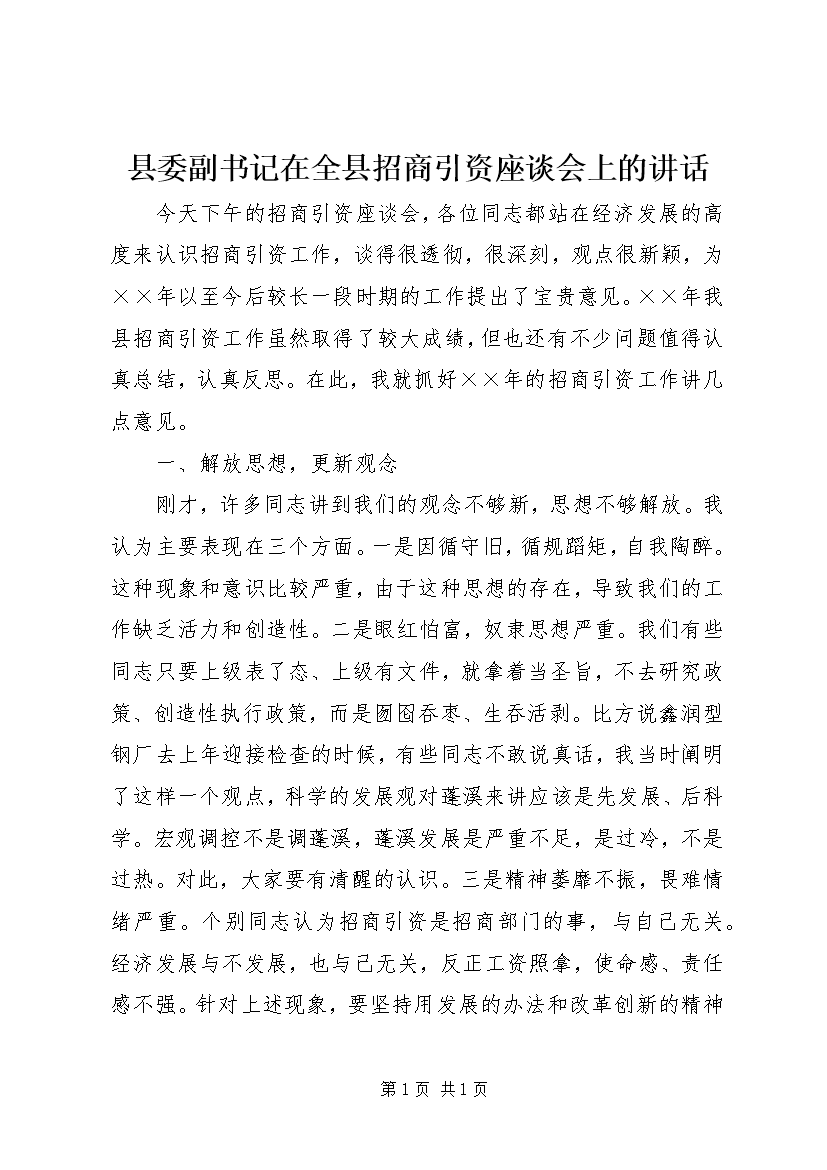 县委副书记在全县招商引资座谈会上的讲话 (9)