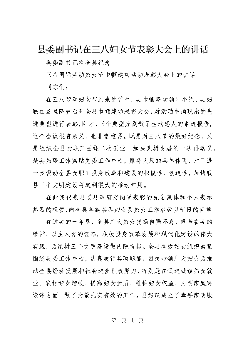 县委副书记在三八妇女节表彰大会上的讲话 (5)