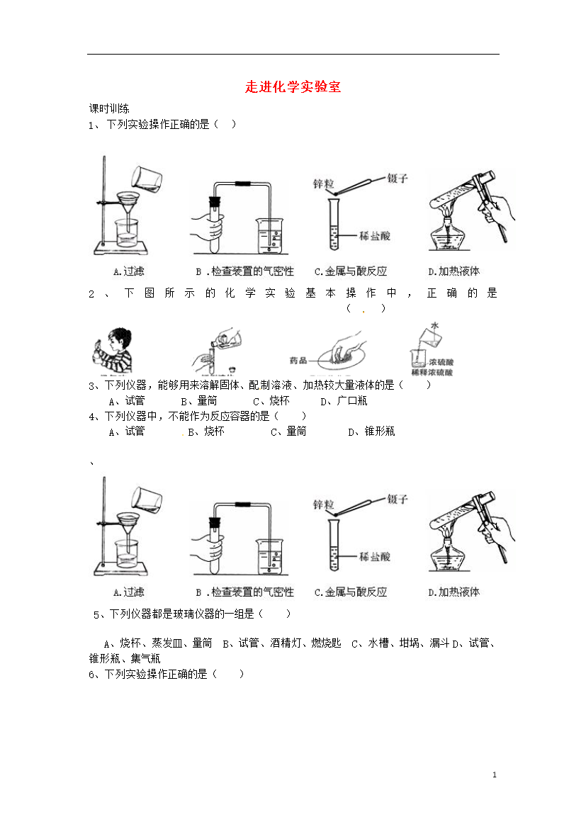 试题-全国-2015_九年级化学上册 第1单元 课题3 走进化学实验室课时训练1(无答案)(新版)新人教版